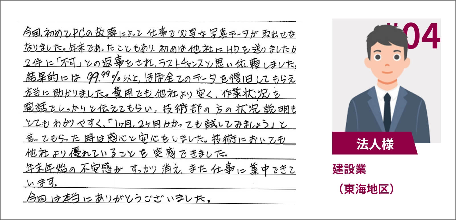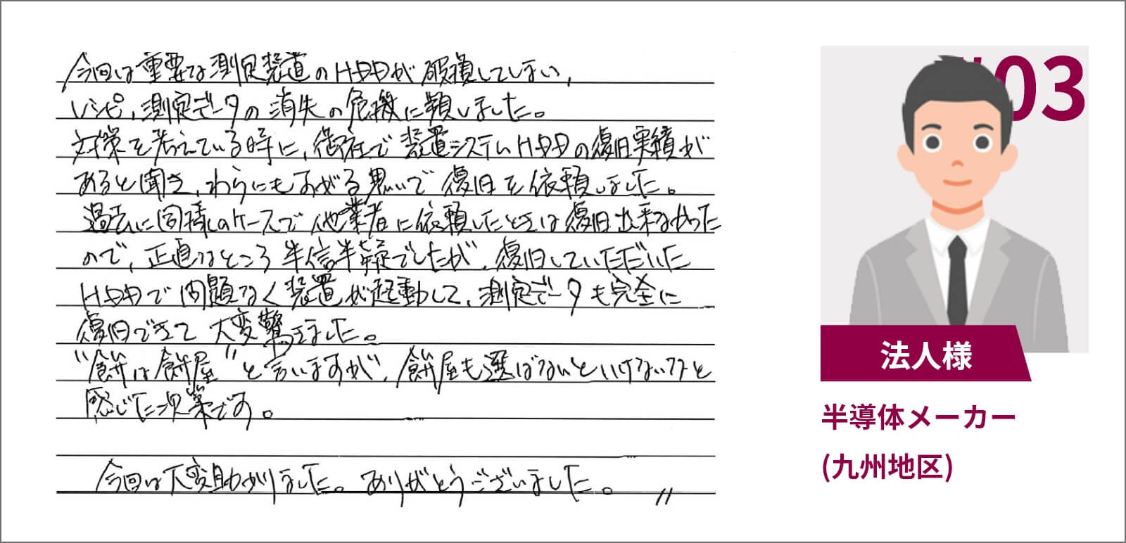 復元業者の選定ミスは致命的 プロが選ぶ業者をご利用ください